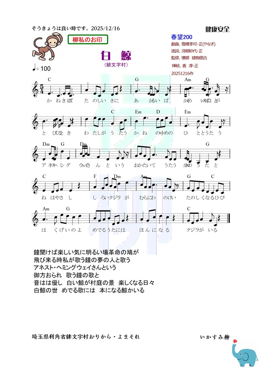 音はは優し 白い鯨が村庭の景 楽しくなる日々